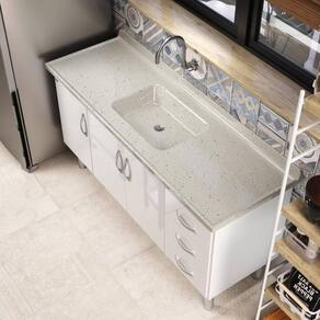 Diferenciais: - Produzida em mármore sintético com acabamento em Gel Coat com brilho: durabilidade e aparência impecável por muito mais tempo. - Cuba com adesivo antirruído: proporciona um ambiente mais silencioso e confortável durante o uso. - Higiene garantida: superfícies lisas e sem porosidade, que evitam o acúmulo de sujeira e facilitam a limpeza. - Mais segurança e praticidade: protetor de parede e caneletas altas, ideais para impedir o derramamento de água e manter tudo sempre seco e organizado. - Design que valoriza o ambiente: perfeita para quem busca um visual moderno e funcional para a cozinha.