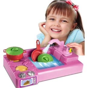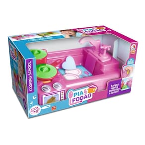 Pia e fogão - cor de rosa Cozinha infantil fogão com pia sai agua de verdade. Lua de cristal Brinquedo pia sai água de verdade c/fogão lua de cristal depois de brincar de cozinhar no fogãozinho nada melhor que continuar a brincadeira e lavando o que sujaram na pia que acompanha. Com essa linda pia e fogão, podem soltar a criatividade na brincadeira e o melhor de tudo é que sai água de verdade da pia ao pressionar a torneira. Modelo: 617material: poliestireno e polipropileno cor: rosa altura da embalagem: 20cmcontem: 1 pia com fogão, 2 panelas, 2 tampas e 1 caixinha montar e brincar. Atenção: as cores dos acessorios podem mudar de acordo com o lote do fornecedor tamanho aproximado da embalagem: a: 20 , l: 40 , c: 24 cm Código inmetro: 302 Marca: Não Informado Ean: 7898198176170