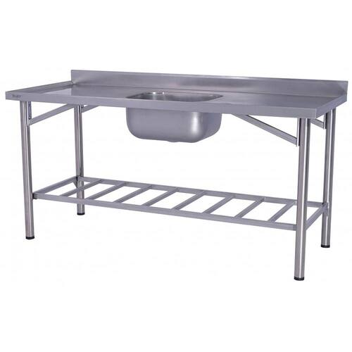 A Pia Industrial Benfati é feita de aço inox 304 de alta qualidade, com tampo de 0,80mm e bordas de retenção de líquidos e encosto de 10cm. A cuba também é feita de aço inox 304 e tem tamanho de 50x40x25cm. A estrutura é feita de tubo 2" aço inox 304, garantindo resistência e durabilidade.
