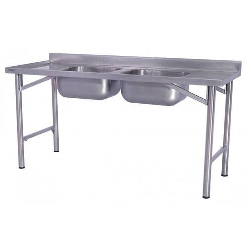 A Pia Industrial Benfati é feita de aço inox 304 de alta qualidade, com tampo de 0,80mm e bordas de retenção de líquidos e encosto de 10cm. As cubas também são feitas de aço inox 304 e tem tamanho de 50x40x25cm cada. A estrutura é feita de tubo 2" aço inox 304, garantindo resistência e durabilidade.