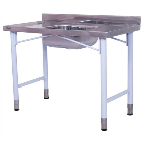 A Pia Industrial Benfati é feita de aço inox 430 de alta qualidade, com tampo de 0,80mm e bordas de retenção de líquidos e encosto de 10cm. A cuba também é feita de aço inox 430 e tem tamanho de 50x40x20cm. A estrutura é feita de tubo aço carbono 2" com ponteiras em inox, pintura pó híbrida com secagem em estufa e tratamento antiferrugem, garantindo resistência e durabilidade.