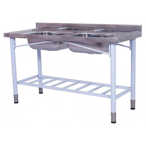 A Pia Industrial Benfati é feita de aço inox 430 de alta qualidade, com tampo de 0,80mm e bordas de retenção de líquidos e encosto de 10cm. As cubas também são feitas de aço inox 430 e tem tamanho de 50x40x20cm. A estrutura é feita de tubo aço carbono 2" com ponteiras em inox, pintura pó híbrida com secagem em estufa e tratamento antiferrugem, garantindo resistência e durabilidade.
