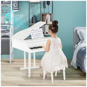 Experiência Maravilhosa para Piano: Com 30 teclas com tamanhos apropriados e altura da tecla 2,5 centímetros, este piano clássico para crianças fará seu filho tocar com mais intensidade e imerso na melodia elegante. O tamanho da chave é adequado para os dedos das crianças e cada chave é fácil de pressionar. Brinquedo educacional perfeito: O mini piano de cauda vem com um banquinho confortável para as crianças sentarem, para que possam brincar com mais aconchego. Além disso, projetadas com um suporte de música funcional, as crianças podem aprender a tocar piano com maior eficiência. Material e confiável: Todas as teclas de piano são feitas de ABS premium, que suporta batidas de dedo contínuas e de longa data. E as pernas do banquinho e do piano são construídas com madeira de bétula selecionada, que não é apenas resistente, mas também segura e amigável para as crianças. Detalhes pensativos: O piano de brinquedo de madeira adota um design flip top com uma peça de apoio durável, tornando o mais elegante. Além disso, a borda arredondada e a superfície pintada com spray não machucam a pele delicada das crianças , garantindo maior segurança. Presente ideal para o seu filho: Este conjunto de piano e banquinho para crianças será um presente perfeito para crianças de 3 a 8 anos. Será eficaz em inspirar potencial musical, promover discriminação sonora, melhorar a coordenação olho mão e reduzir o tempo da tela. Além disso, o piano ganhou a certificação ASTM e CPSIA.