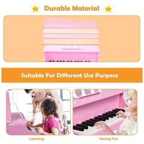 Informação do produto Cor: Rosa Marca: MEL ALEGRIA Material: Madeira projetada Tema: Música Dimensões do item CxLxA: 48,26 x 48,26 x 48,26 centímetros Faixa etária descrição: Criança Peso do Item: 8,16 quilogramas Instrumento: Piano Número de chaves: 30 Marca: Não Informado