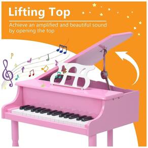Experiência maravilhosa de piano: Com 30 teclas com tamanhos apropriados e altura de tecla de 2 centímetros, este piano clássico infantil fará com que seu filho toque com mais atenção e imerso na melodia elegante. O tamanho da tecla é adequado para os dedos das crianças e cada tecla é fácil de pressionar. Brinquedo educativo perfeito: O mini piano de cauda vem com um banquinho confortável para as crianças sentarem, para que possam brincar com mais conforto. Além disso, projetado com um suporte para partitura funcional, as crianças podem aprender a tocar piano com maior eficiência. Material e confiável: Todas as teclas do piano são feitas de ABS premium, que resiste a batidas contínuas e prolongadas dos dedos. E as pernas do banco e do piano são construídas em madeira de bétula selecionada, que não só é resistente, mas também segura e amigável para as crianças. Detalhes atenciosos: O piano de brinquedo de madeira adota um design flip top com peça de suporte durável, tornando o mais elegante. Além disso, a borda arredondada e a superfície pintada com spray não machucam a pele delicada das crianças, garantindo maior segurança. Presente ideal para o seu pequenino: Este conjunto de piano e banco infantil será um presente perfeito para crianças de 3 a 8 anos de idade.