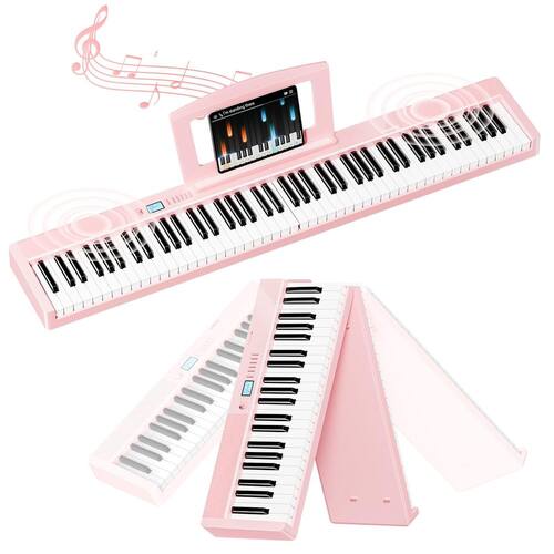 - [Piano dobrável]: o design de forma dobrável recentemente atualizado é utilizado, e uma dobradiça mecânica mais refinada e estável é criada por artesanato requintado, que é forte e firme, se encaixa perfeitamente, pode ser aberta e fechada a 180 graus de forma flexível. O tamanho do teclado do piano após dobrar é de apenas 61,5 x 21,6 x 13 cm. É mais conveniente de carregar e mais livre para jogar