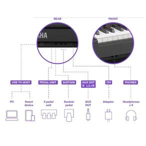 - Piano Digital Yamaha 88 Teclas, com 192 Polifonias, 24 Sons, 20 Ritmos, Bluetooth, Efeitos Inseridos e Muito Mais!