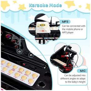 Modo Karaokê com cabo USB: O microfone permite que as crianças pratiquem canto enquanto tocam piano. A interface MP3 pode ser conectada ao celular, iPad, computador ou MP3 player. Enquanto isso, a interface MIC se conecta ao micrófago que pode ser ajustado em diferentes ângulos para se adaptar à altura do bebê.