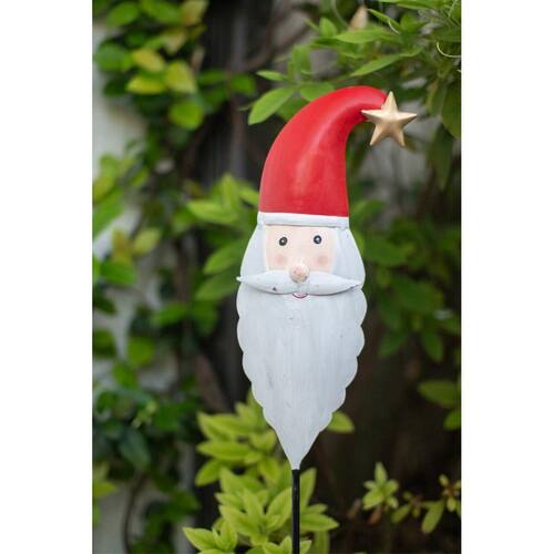 Pica de jardín de Santa Claus hecha de hierro pintado, ideal para decorar espacios exteriores con un toque festivo y duradero.