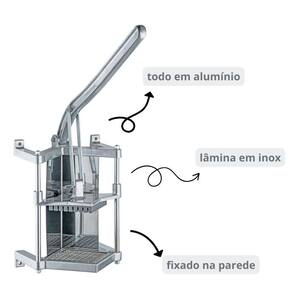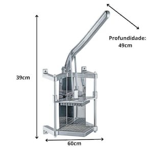 Picador Cortador De Batata Palito E Legumes Industrial Inox de Parede Prático Corte 12mm Picador Cortador de Legumes Fabricado pensando em você que cozinha legumes e precisa cortar os alimentos de uma maneira rápida, prática e eficiente, otimizando assim, o tempo de produção em seu estabelecimento. Indicado para uso industrial e comercial, este produto é inovador, pois conta com toda a tecnologia sofisticada, com qualidade e excelência na hora de cortar os alimentos em forma de cubos. Ele é fabricado com lamina em aço inox e estrutura em alumínio com cabo ergonômico, que proporciona facilidade no manuseio. Tenha em sua cozinha um equipamento que foi desenvolvido para trabalhos que precisam ser rápidos, ou seja, é um utensílio para cortar em segundos Características: Material: Aluminio Lâmina: Aço Inox Dimensão do Corte: 12mm Dimensão da Base: 9x9 cm Sistema: Manual Altura com cabo erguido: 70 cm Altura com cabo abaixado: 29 cm Altura Útil da área de corte: 18cm Largura: 19 cm Comprimento: 37 cm Peso: 1,9 kg Marca: Malta : 6 meses Marca: Não Informado