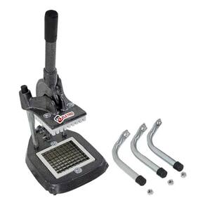 Marca: kd eletro Material - corpo: alumínio fundido Basculante: alumínio fundido Coluna tubo de aço carbono zincado Pés em tubo de aço carbono zincado Pintura: eletrostática a pó Facas: aço inox 10 mm Ponteira dos pés e coluna de pvc Manupla e plastico
