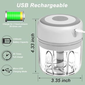 - Com picador de alho recarregável USB: como um mini-picador elétrico leve de 250 ML, é perfeito para pequenos trabalhos, como picar alho, gengibre, pimentão, carne, vegetais, cebola, nozes e muito mais, carregue por USB. Você pode usá-lo para cortar os alimentos em pedaços menores. À medida que o tempo de corte aumenta, os alimentos ficam cada vez menores