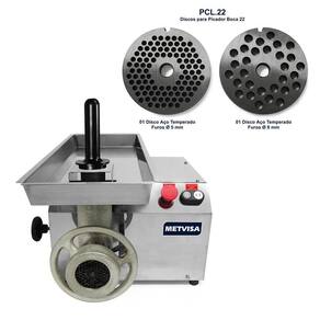 Picador Moedor de Carne Profissional Para Açougues Boca 22 Aço Carbono 1cv Pcl22l 220v - Metvisa