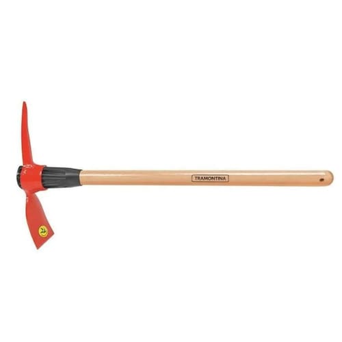 Descrição A picareta é forjada em todo o corpo da peça, proporcionando maior resistência e menor desgaste durante o uso. Fabricada em aço carbono especial forjado de alta qualidade. Recebe pintura eletrostática a pó, que tem uma melhor apresentação visual e maior proteção contra oxidação. Lâmina com tamanho 4.Possui olho oval de 70 x 45 mm.O cabo de 90 cm desta ferramenta, além de possuir ótima resistência, é produzido com madeira de origem renovável com acabamento envernizado, para um melhor acabamento e apresentação do produto. A camada protetora em verniz incolor realça sua tonalidade, concedendo brilho e um toque mais liso ao produto. O sistema de encabamento com bucha plástica proporciona excelente fixação da picareta, evitando que os cabos se soltem durante o uso. A bucha absorve a contração da madeira, mantendo o cabo sempre firme, e auxilia na absorção do impacto durante o uso. Com suas robustas extremidades, as picaretas são ferramentas para cavar terrenos bastante compactados, quebrar e arrancar pedras. São utilizadas na agricultura, jardinagem e construção civil. A pá larga é utilizada na capina, revolvimento do solo e corte de algumas raízes e a ponta também permite que o usuário possa quebrar eventuais rochas. Ean: 7891117011460
