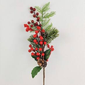 O Pick de Natal Folhagem De Natal Pick Cereja Com Pinha 63X20X9Cm é perfeito para decorar o seu ambiente durante as festas de fim de ano. Com ele, você vai deixar sua casa ainda mais sofisticada e encantadora.