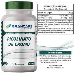 Picolinato de cromo alta concentração 250mcg com 90 cápsulas - grancaps Picolinato de cromo alta concentração 250mcg com 90 cápsulas - grancaps
