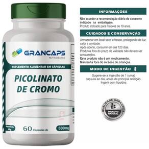 Itens do anúncio - 1 unidade do produto: picolinato de cromo alta concentração 250mcg com 90 cápsulas - grancaps. Total: 60 cápsulas por frasco. Marca: Grancaps Ean: 7898704671373