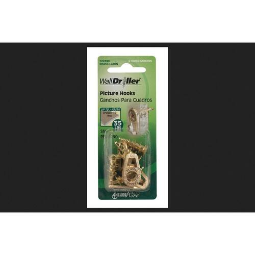 Gancho para imagem Hillman WallDriller de nylon e parede seca de 22 kg. 4 peças de latão