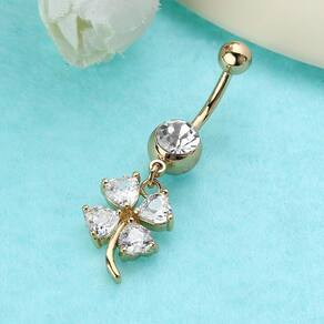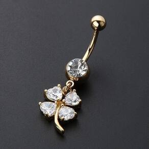 Piercing de umbigo em aço cirúrgico banhado a ouro. Pedras de zircônia em formato de trevo Simplesmente LINDO Uma linda peça para ser usada no dia a dia e em qualquer ocasião.