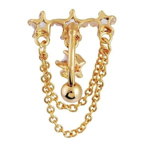 Adicione um toque celestial ao seu estilo com este piercing de umbigo dourado em forma de estrela invertida. Feito em ouro, esse piercing pendurado traz um design único e sofisticado. Perfeito para quem busca expressar sua individualidade e estilo, é uma peça que certamente vai chamar atenção. O ouro dourado confere um brilho luxuoso, enquanto a forma de estrela invertida adiciona um toque de magia e originalidade. Ideal para umbigo, é uma escolha perfeita para quem quer se destacar.