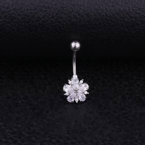 Piercing de umbigo. Material: Pedras de zircônia em aço cirúrgico Pingente banhado a prata Uma linda peça para ser Utilizado no dia a dia e em qualquer ocasião. Tamanho do pingente: 0,9 cm Tamanho total: 2,4 cm. Acompanha saquinho de veludo --------------------- BIG BOOST ------------------------ Piercing De Umbigo Prata Flor Zirconia Pequeno Aço 316 Vendas nos últimos 60 dias marca: Love Bijoux modelo: flor zirconia unidades por embalagem: 1 espessura: 16 mm materiais: Aço tipo de piercing: Umbigo zona de aplicacao: Umbigo