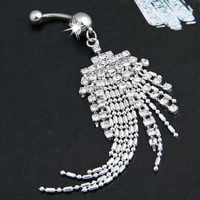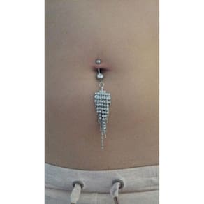 Piercing De Umbigo Prata Pendurado Grande Comprido