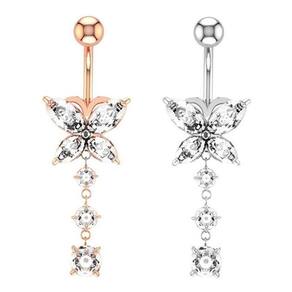 Piercing De Umbigo Prata Pendurado Pedra Borboleta