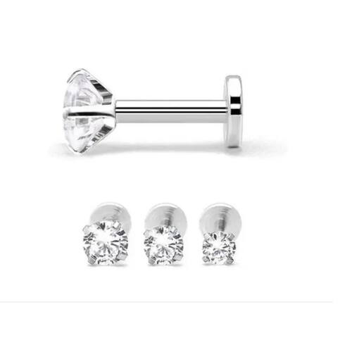 Piercing para tragus, labret, helix, etc. , ponto de luz com pedra de zirconia. Rosqueamento pela frente com base reta. Tamanhos das pedras: