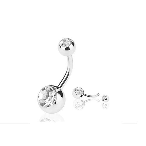 Piercing de umbigo em aço cirúrgico com duas pedras. Uma linda peça para ser utilizado no dia a dia e em qualquer ocasião. - pode ser utilizado para o primeiro furo. - pode ser utilizado constantemente, para tomar banho, piscina e banho de mar. - não escurece. - totalmente antialérgico. Anúncio referente a uma unidade. Temos com haste de 8mm 1,2mm