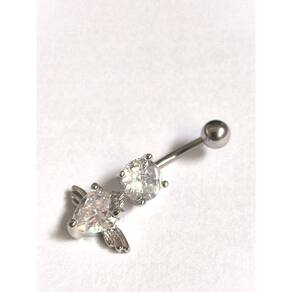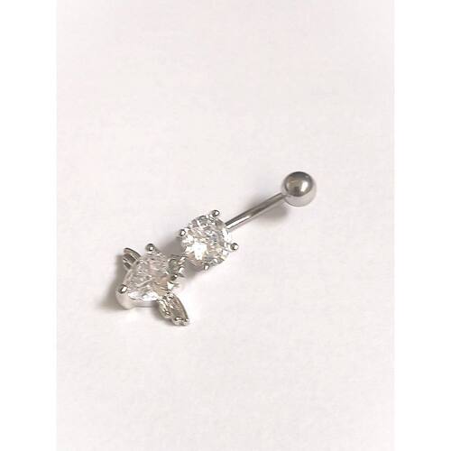 Piercing umbigo aço cirúrgico coração aladado zirconia