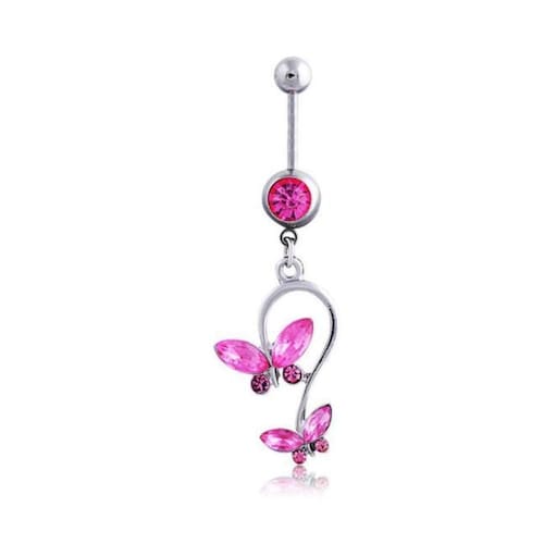 Piercing Umbigo Borboleta Com Haste Em Aço Cirúrgico Cor: Rosa modelo 2 Piercing de Umbigo Borboleta: Haste em Aço Cirúrgico para Segurança e Confort