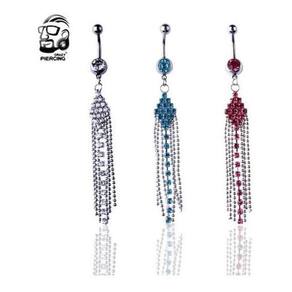 Piercing de umbigo com haste de aço cirúrgico. Com pedras de stras pingente folheado estilo castaca