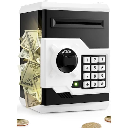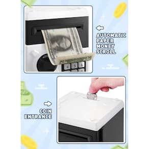 Se você tiver uma confusão sobre como melhorar a consciência de segurança dos seus filhos e desenvolver a consciência econômica, é melhor ter um seguro para as crianças. A Playsheek é dedicada a produzir bancos de dinheiro de alta qualidade e engenhosos para crianças e adultos. Este cofrinho manterá as crianças entretidas por horas enquanto são educativas. Sobre as especificações: 1.Material: plástico ABS ambiental 2.Cor: Vermelho-Preto 3. Fonte de alimentação: 3 pilhas AA de 1,5 V (não incluídas) Perguntas frequentes: 1. Esqueceu a senha? ---Remova as pilhas e reinstale. A palavra-passe será restaurada para a palavra-passe predefinida "0". 2. A porta não abre depois que a senha correta inserida? ----Experimente baterias novas. Dicas: 1. Abra a tampa da bateria na parte inferior e carregue três pilhas AA de 1,5 V. 2. Se você não usar por um período de tempo, remova as baterias ou experimente novas. - Materiais seguros: nosso cofrinho é feito de plástico ABS inodoro, antienvelhecimento; o cofrinho ATM emite som quando o dinheiro é inserido na 'boca'; presente divertido para crianças e ajuda as crianças a economizar dinheiro enquanto se divertem com o banco de brinquedos - Grande capacidade: esta caixa de economia de dinheiro mede 19 x 13 x 12 cm, pode armazenar 600 moedas ou 100 peças de papel-moeda; e também pode ser usada para armazenar brinquedos, joias, cartões de beisebol, cartas de baralho e outros itens pequenos - Proteção de senha: a senha padrão é 0000 e você pode configurá-la para outra senha de 4 dígitos; se você esquecer sua senha, remova as pilhas e reinstale; a senha será restaurada para a senha padrão "0.0 cm - Rolagem automática de papel-moeda: quando o dinheiro é mantido perto da entrada, ele será absorvido automaticamente na poupança de dinheiro; dinheiro muito velho ou macio não funcionará para este processo; o compartimento de moedas na parte superior do banco permite que seja utilizado como um cofrinho para armazenar moedas - Garantia: Se você não tem ideia de como fazer quando esquecer a senha ou quiser redefinir a senha, diretamente para obter instruções a qualquer momento