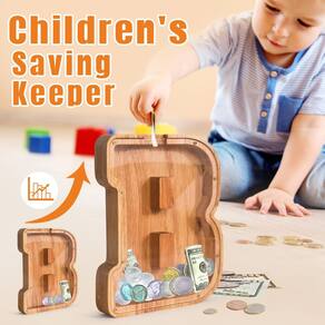 Piggy Bank PrimRend Wooden Letter Money Coin Cash Saving Bank