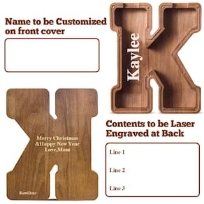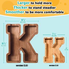 Tem problemas para pegar um presente para seus filhos ou netos? Aqui está ela! Nosso cofrinho grande e extra grande em forma de carta, feito de madeira 100% orgânica. É o presente perfeito para bebês/crianças/ou qualquer pessoa com seus nomes em inglês! O vidro acrílico na parte superior permite ver através da caixa de moedas e avaliar o progresso da economia de dinheiro. Há um compartimento para moedas na parte superior, onde as moedas devem ser jogadas. E o compartimento é amplo o suficiente para qualquer moeda e notas. Você também pode ter seu nome completo gravado a laser no acrílico, o que o tornará único para você ou para a pessoa que você ama. Como tirar o dinheiro? Você pode abrir a caixa de dinheiro desparafusando vários parafusos pequenos e remover o vidro acrílico. - Design recortado, design de modelo da edição 2.0 da Piggy Bank, muito maior, baseado no anterior, o que faz com que pareça mais letras. Formas de letras muito mais fofas com designs ampliados, uma capacidade maior mais espessa, bonita, volume alto e suave do que outras no mercado! - Brinquedos educativos, presente perfeito: este cofrinho de madeira será um presente perfeito. O design inicial personalizado das letras mais o nome personalizado gravado a laser na capa de plexiglass pode observar quanto dinheiro eles economizaram para promover uma sensação de economia desde cedo. Além disso, eles vão sentir como foram tratados, o que ajudará a tornar o relacionamento mais próximo. - Material e design atualizados: a edição atualizada 2.0 teve melhorias no processo de produção e artesanato, nossos cofrinhos de madeira de nogueira de alta qualidade tornam nosso cofrinho de madeira natural, seguro e inquebrável. Além disso, eles podem funcionar como decoração de madeira. - Seguro e prático: A-Z Letter Bank é feito de 100% madeira, natural e durável, serviço de nome personalizado tornou-o único como presente para bebês recém-nascidos e feriados como aniversário, volta às aulas, ação de graças, natal e ano novo. Ótimo presente de inauguração de casa para adultos como enfeites decorativos. Embalado com Love Home Sweet Home. - SERVIÇO DE NOME GRAVADO A LASER: Agora apoiamos a gravação a laser de nomes e gravaremos o texto que você precisa no acrílico do seu cofrinho de letras, qualquer problema, gratuitamente, responderemos dentro de 48 horas.
