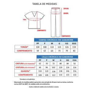 O Pijama cirúrgico ou Scrub também chamado de Uniforme Cirúrgico (Calça + Camisa) é confeccionado em gabardine, 95% poliéster e 5% elastano.