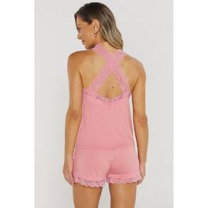 Pijama Feminino Curto Renda e Decote Gota Rosa Aconchego - P - 700.447A