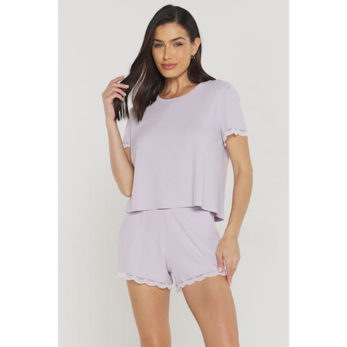 Pijama Feminino Curto Ribana Canelada com Bolso e Rendas Lilás Mistério - P - 700.441A