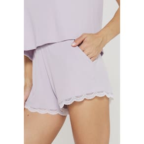 Pijama Feminino Curto Ribana Canelada com Bolso e Rendas Lilás Mistério - M - 700.441A