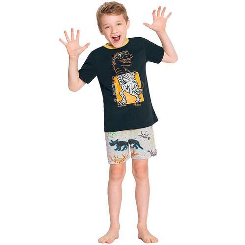 Pijama Dino da marca Alakazoo possui um toque macio e traz conforto e leveza durante as noites de sono do seu pequeno.