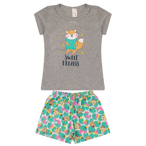 Pijama Infantil Menina Verão em Meia Malha Estampado - 6 - Mescla