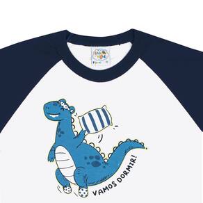 Pijama infantil para manter a noite dos meninos ainda mais confortável e fresquinha. Composto por camiseta e bermuda meia malha. Camiseta manga curta na cor branca com mangas na cor marinho, gola reforçada e estampa frontal de dinossauro que brilha no escuro - a diversão começa até na hora de dormir - e a bermuda na cor marinho com elástico na cintura para maior conforto.