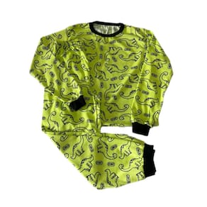 Pijama Infantil Menino Inverno Estampado Dinossauro Blusa Manga Longa e Calça com Punhos em Ribana - Verde Limão - 3 a 4 anos