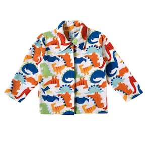 O Pijama Infantil Manga Longa com estampa de dinossauros coloridos em Soft da Tip Top é super quentinho e gostoso para os meninos curtirem o inverno e ficarem protegidos para dormir. Possui abertura por botões de pressão na blusa e calça com elástico.
