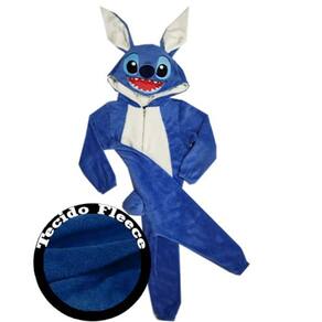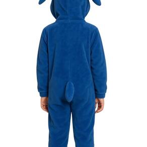 Esta peça possui um design divertido em azul vibrante com detalhes brancos, capuz estilizado com rosto carismático, grandes orelhinhas pendentes e um rabinho fofo na parte traseira. O zíper frontal permite uma fácil colocação, oferecendo praticidade e conforto para o dia a dia das crianças.