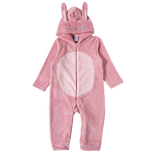 O Pijama Macacão Coelhinho com Capuz Rosa da Tip Top e perfeito para as pimpolhinhas curtirem o inverno com conforto, protegidas do frio e super estilosas. Por ser em pelúcia, ele é quentinho e suave ao toque. Possui abertura por botões de pressão entrepernas e zíper frontal com proteção em algodão para não machucar. O detalhe fica por conta do capuz com olhinhos, narizinho e bigode de coelho bordados e simpáticas orelhinhas de coelho.