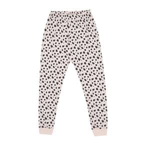 Os pijamas estão cada vez mais divertidos e cheios de estilo para uma boa noite de sono! Invista neste conjunto que é a cara da estação, a blusa de manga longa na cor mescla banana possuí estampa de dálmata na lateral e escrita frontal "Sempre sonhe coisas boas" . A calça com estampa rotativa de manchas de dálmata possuí elastano no cós. Ambas as peças são confeccionadas em moletinho garantindo conforto durante a noite toda!\n