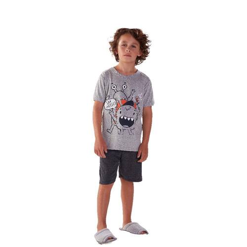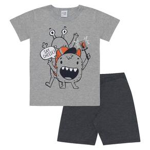 A Good Night by Pulla Bulla traz um conjuntinho super animado para as noites do seu menininho. Uma Camiseta confeccionada em meia malha na cor Mescla cinza com estampa de monstrinhos e uma Bermuda confeccionada em meia malha na cor Mescla preto, um look perfeito para alegrar ainda mais as noites de seu pequenino.\n
