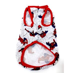 Pijama confeccionada em malha PV poliéster com viscose na cor branca; Estampa temática do Personagem Homem Aranha; Acabamento em cotton vermelho; Tamanho : P; Cor: Branca; Medidas aproximadas: 31 cm de comprimento, 38 cm de circunferência torax, 23 cm pescoço; Deixe seu Pet super estiloso com seu personagem favorito. Marca: Não Informado