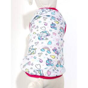 Pijama confeccionada em malha PV poliéster com viscose na cor branca; Estampa temática do Personagem Unicórnio; Acabamento em cotton rosa; Tamanho : G Cor: Branca; Medidas aproximadas: 37 cm de comprimento, 50 cm de circunferência torax, 30 cm pescoço; Deixe seu Pet super estiloso com seu personagem favorito. Marca: Nica pet
